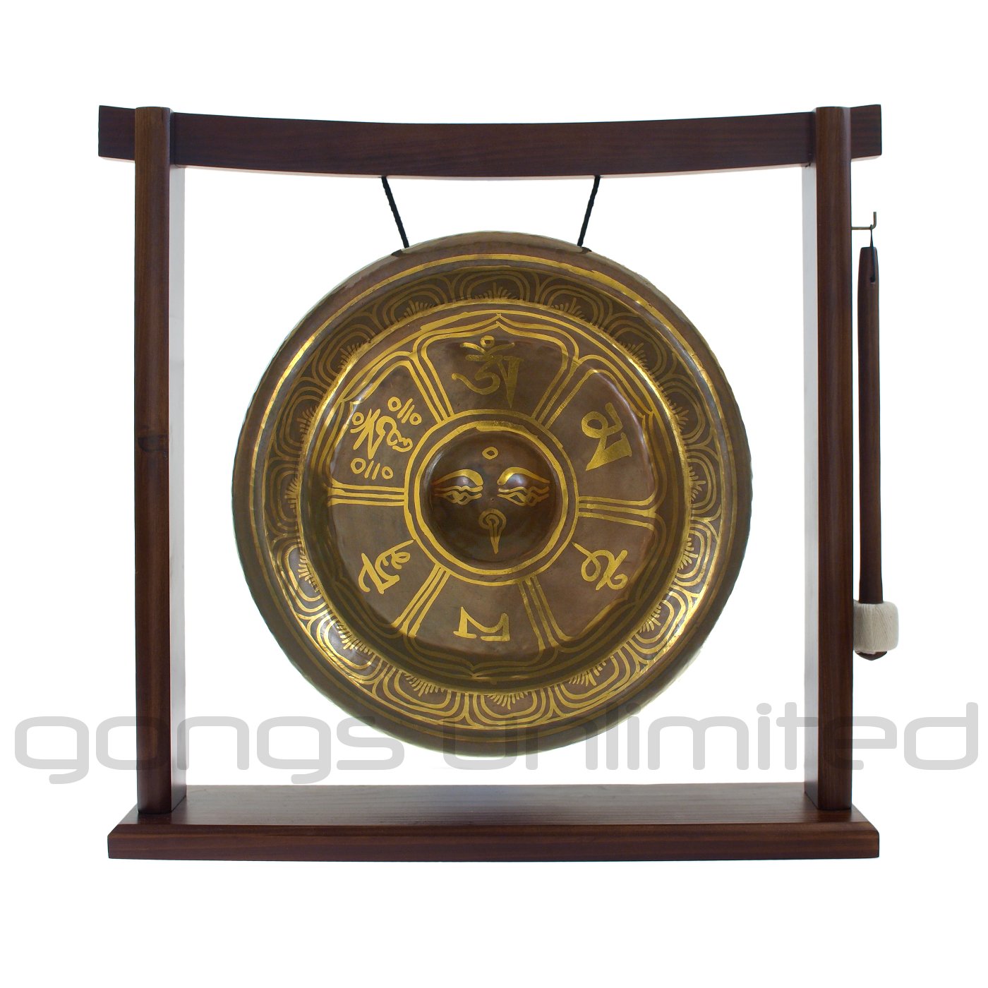 The Tibetan Rising Gong displays symbols that are etched on the gong in Tibetan Buddhist style. Each one is different in style and size because they do each one by hand. That is how it works.